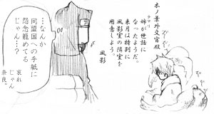 28巻で、テマリさんがサクラに対して素直にカンクロウの解毒を「頼む」と言っているところ。ただの外交程度の付き合いで一部後そんなふうに変われると思えなかったので、それ以前にこんなことがあったんじゃなかろうか、と考えてみました。